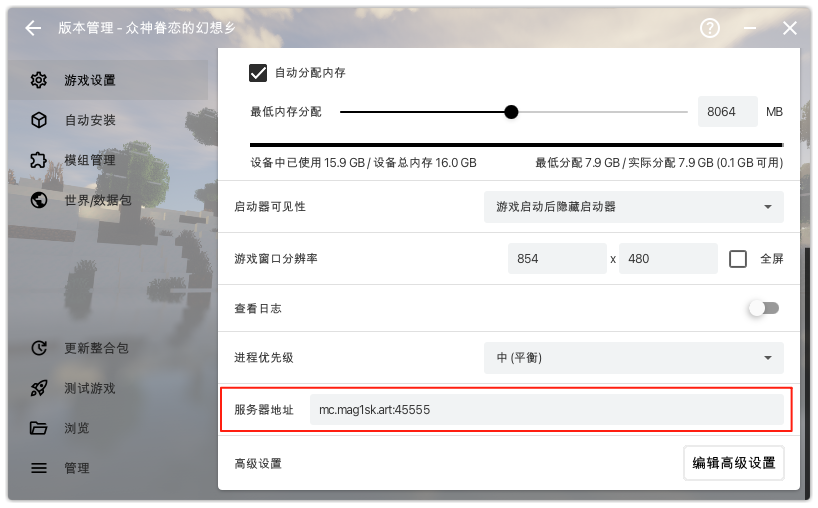 回到主页,启动游戏,进入多人游戏-添加服务器