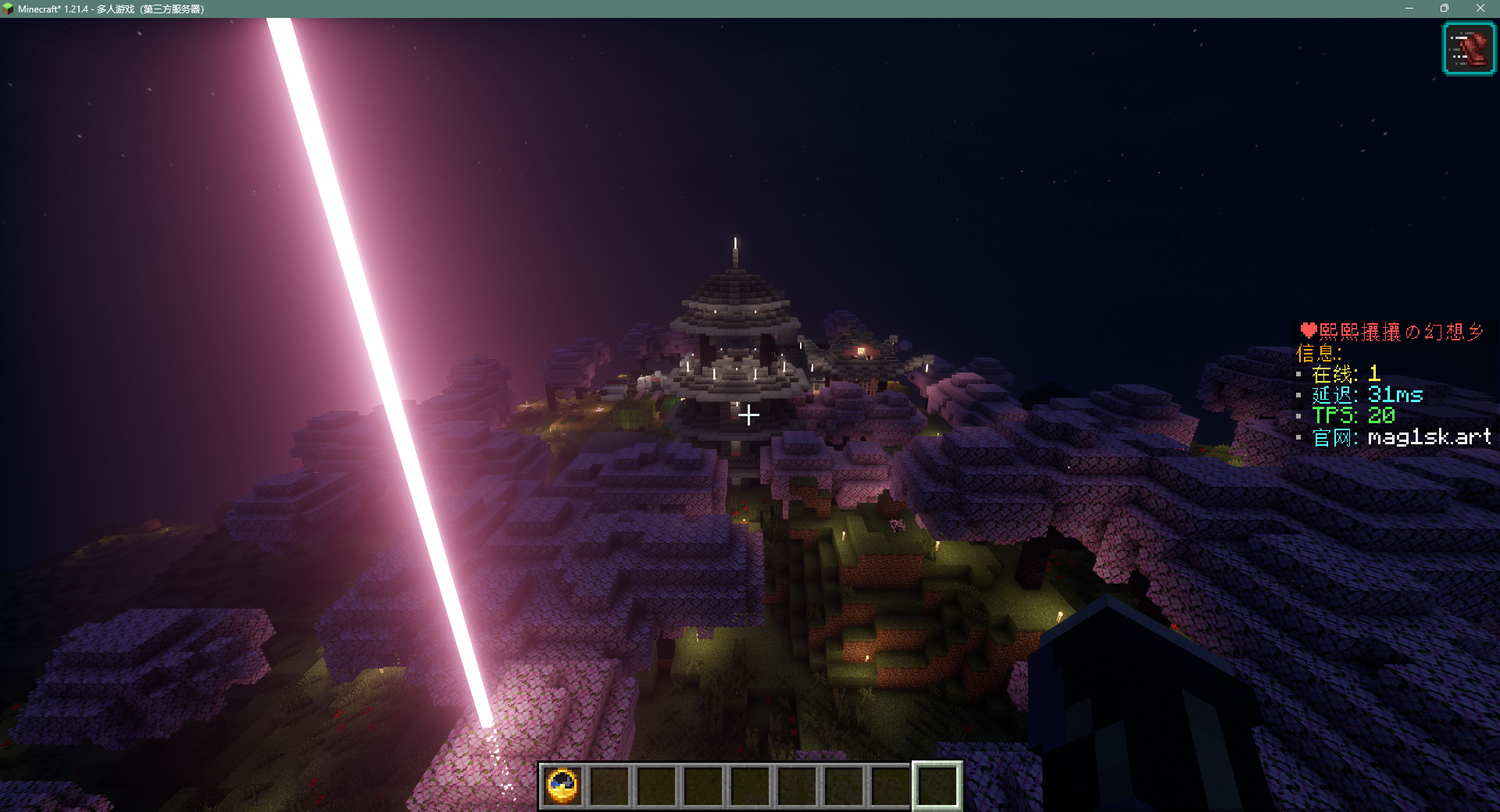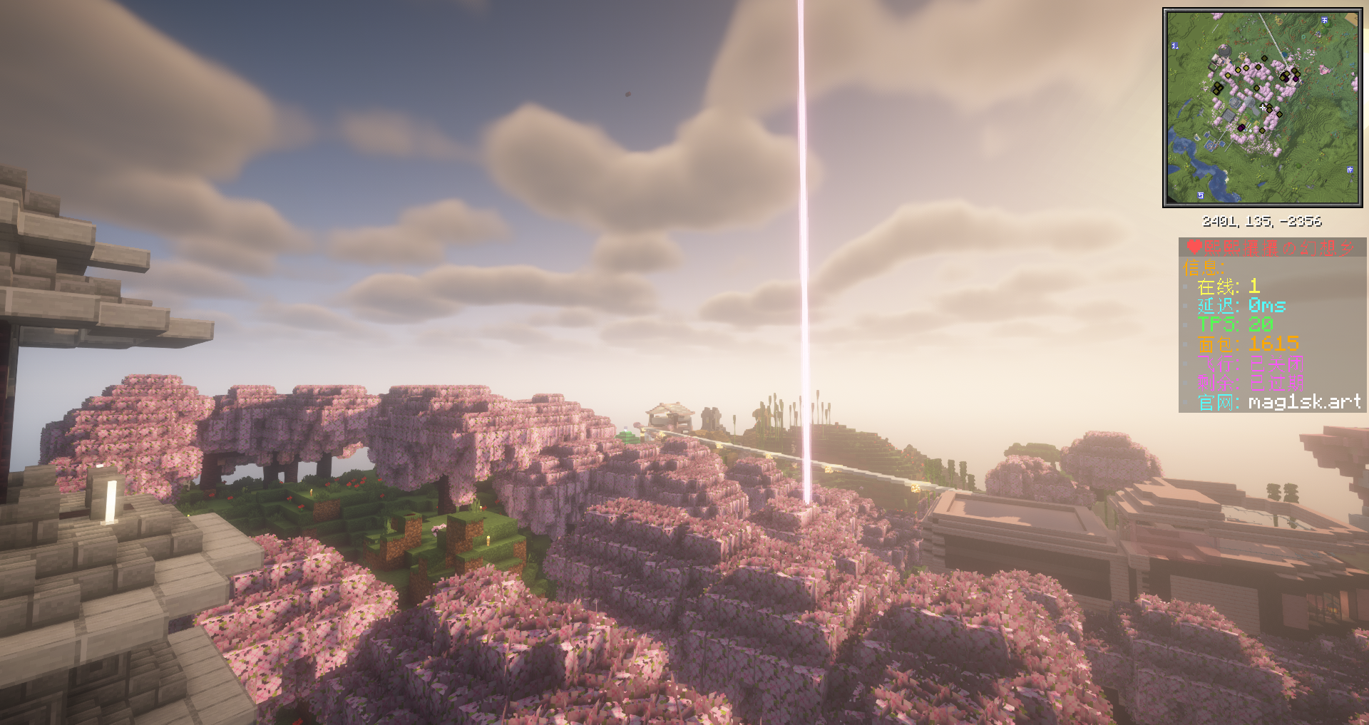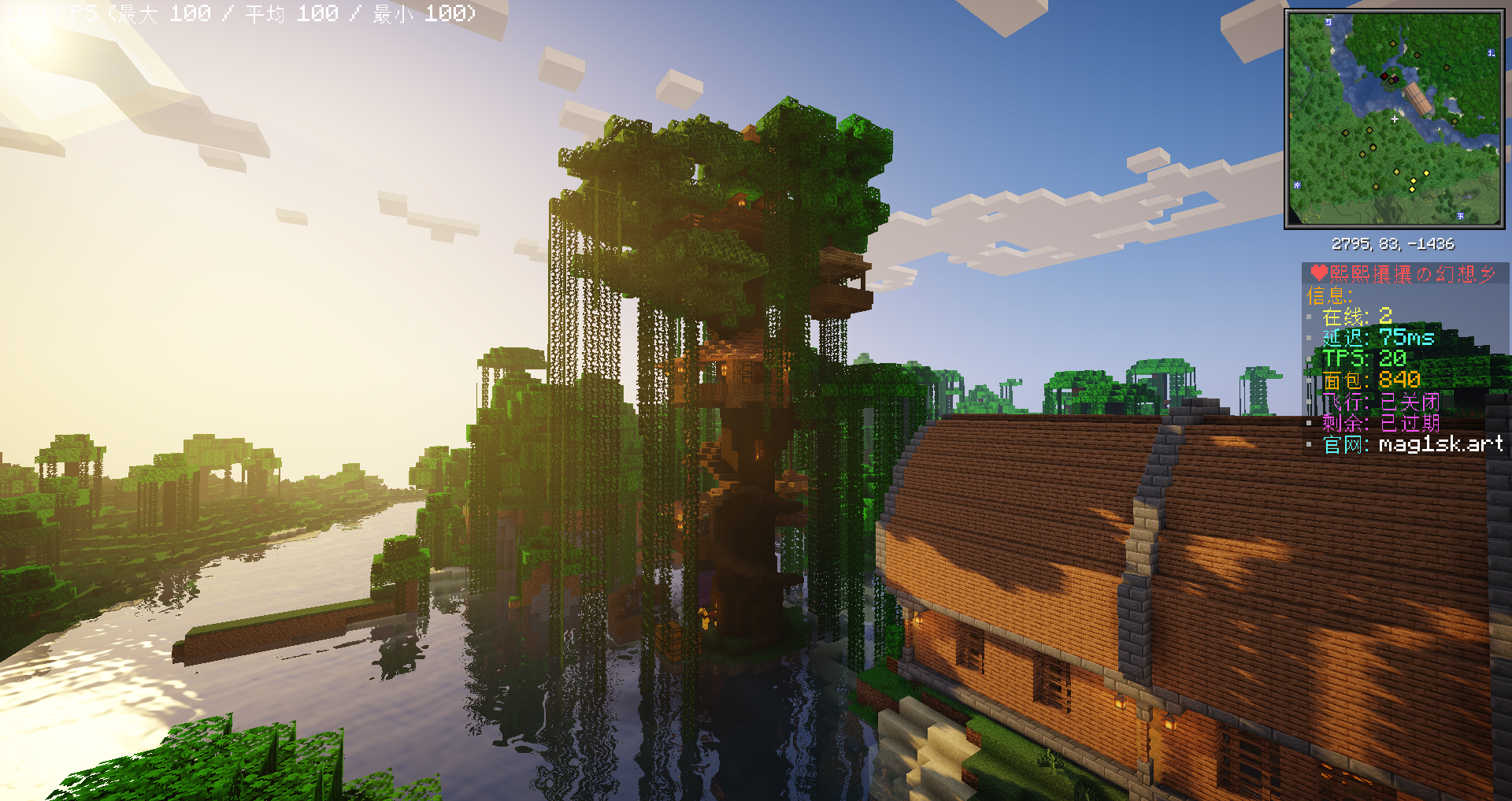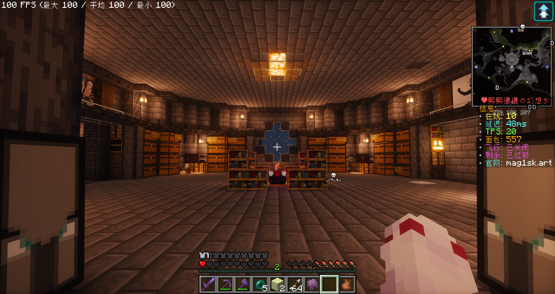 相比一周目,我为它添加了更多好玩的特性:粘液,生电,独立主城,MMORPG特性,更多附魔,武器,地牢以及优美的地形生成,动态难度BOSS,还有更多结构和玩法优化,还有单独的PVP/跑酷群服互联,一切为了玩家黏性和爽感服务。